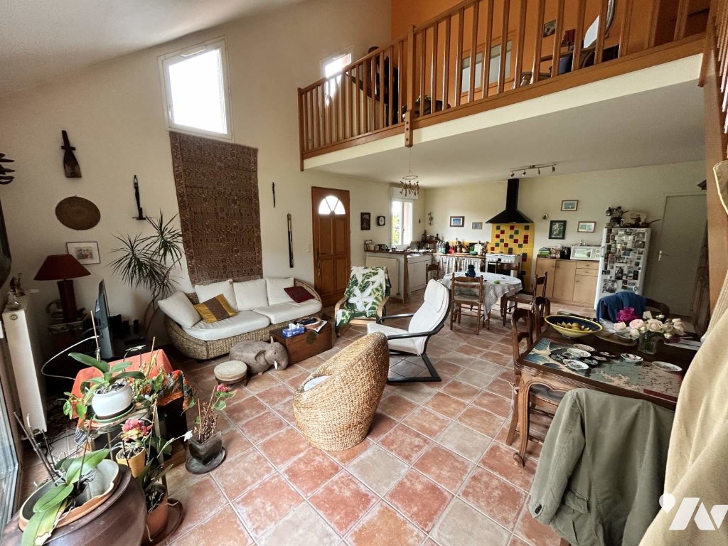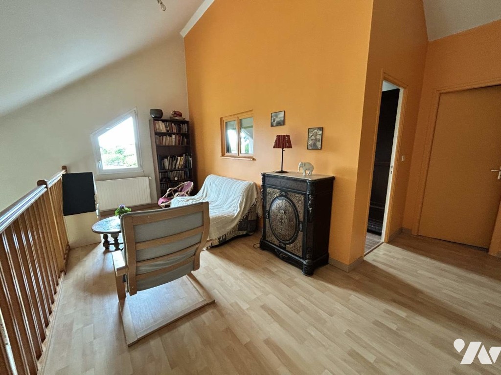 Une mezzanine offrant un second espace de vie ou un coin détente. Trois chambres aux belles proportions et un WC avec lave-mains.